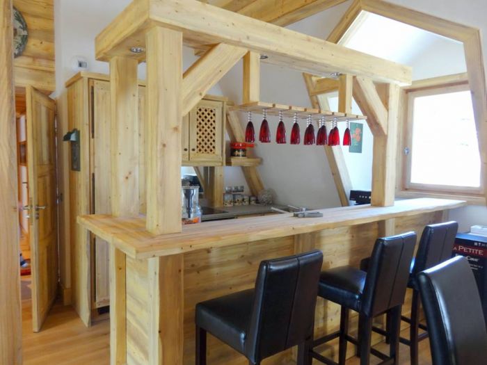 L’appartement entièrement décoré selon le style alpin (avec le concours d’artistes et artisans locaux) est magnifique. Les nombreuses chambres ont toutes un style particulier. La literie est neuve, confortable afin de permettre une récupération optimale après une journée en montagne. La cuisine américaine donne sur le salon confortablement équipé de fauteuils et de canapés.